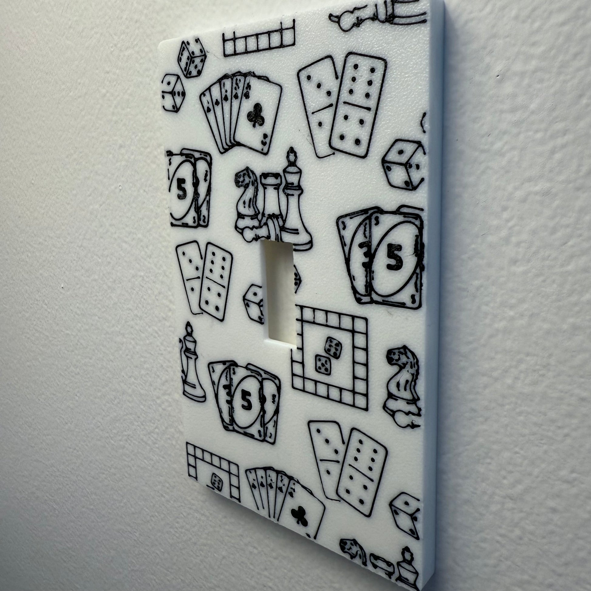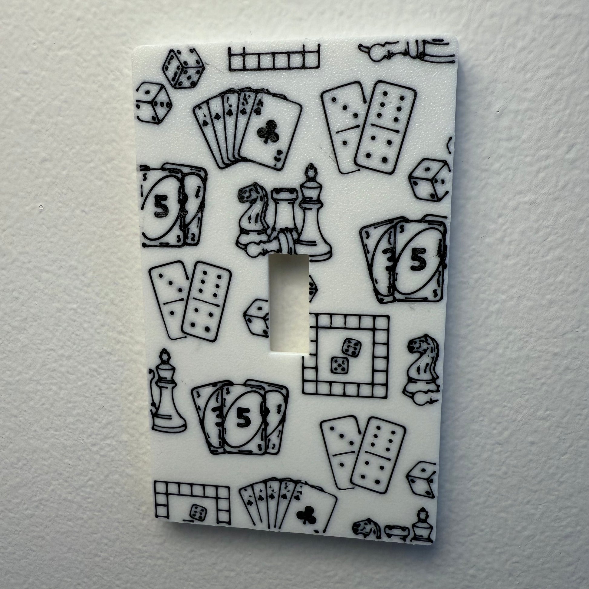 Switch up your lighting game with Game Night! This quirky switchplate features all your favorite classics like chess, uno, and monopoly, reminding you to take a break from adulting and have some fun (without the mess of actual game pieces). Perfect for the playful and young-at-heart.